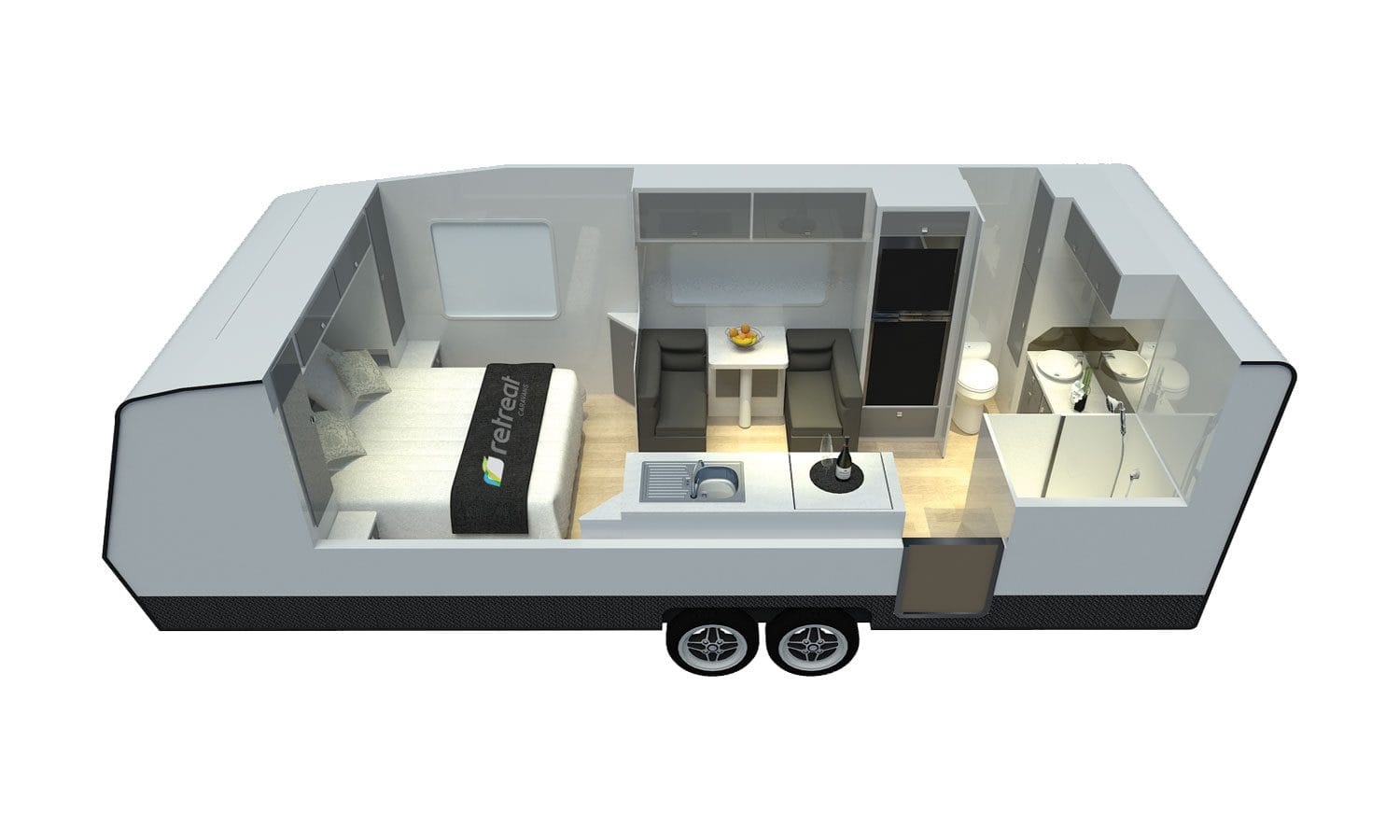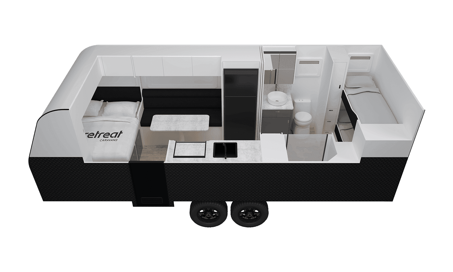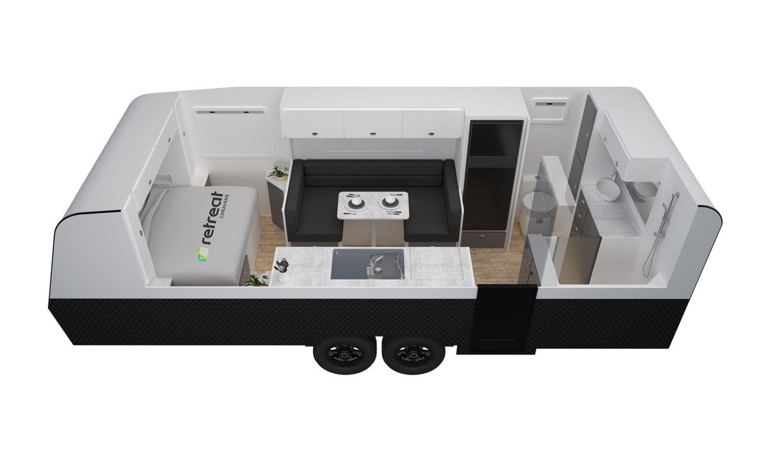 If you want a truly off-road, off-grid experience with your caravan, then the exterior needs to be able to withstand some extreme conditions. This is what makes the ERV totally different from anything you would’ve experienced before. The exterior features a toolbox on A-frame, TV entertainment hatch and a grey water tank. External BBQ Grilling and cooking is also possible with the Electric Weber BBQ with its own pull-out tray. The ERV signature colour is always white which helps minimise thermal transfer into the cabin body by reflecting the heat away.