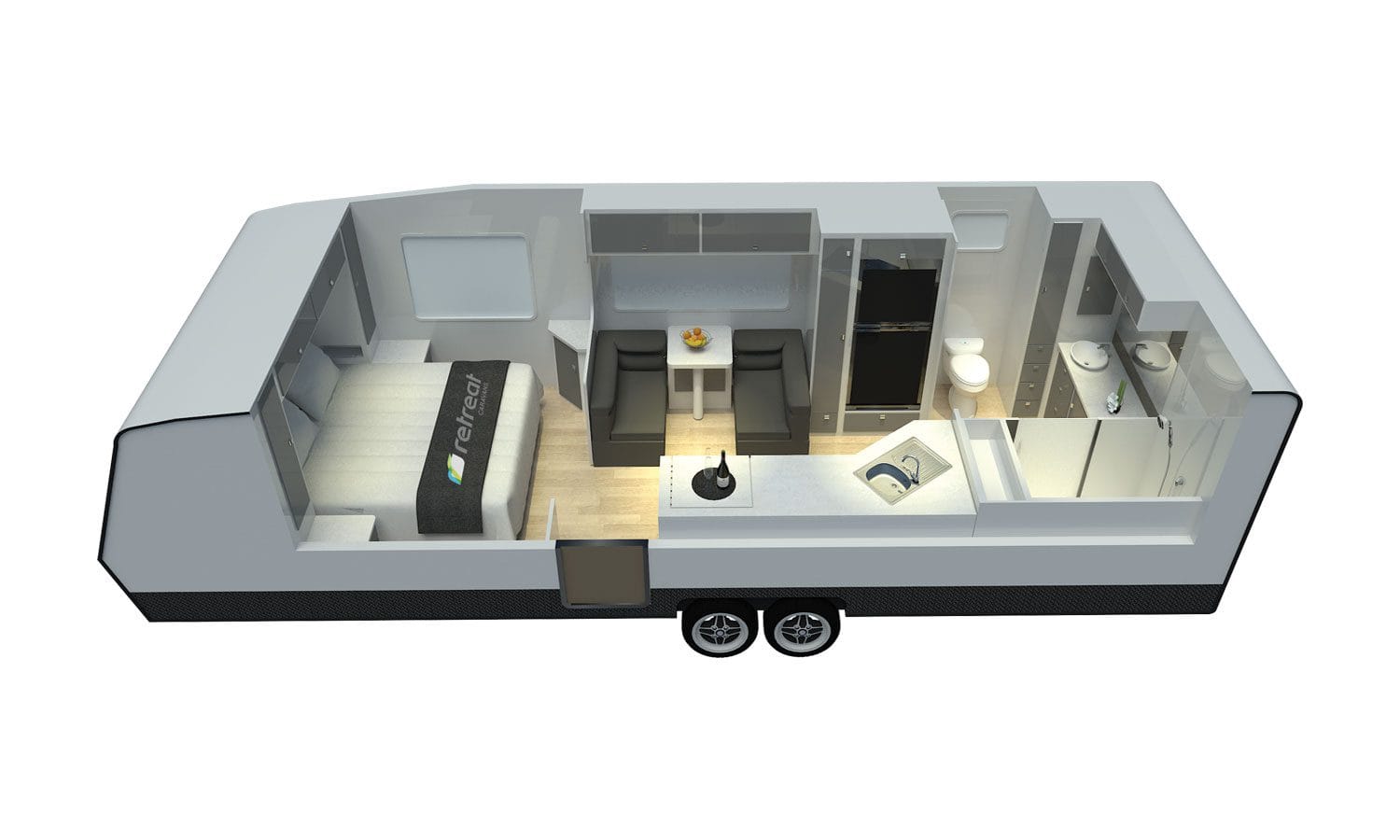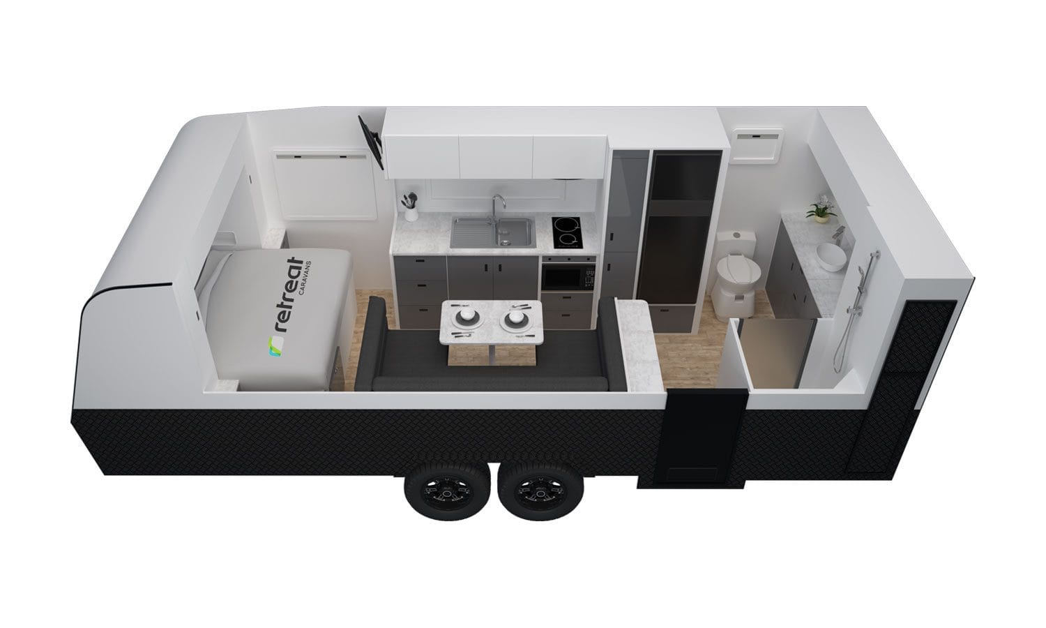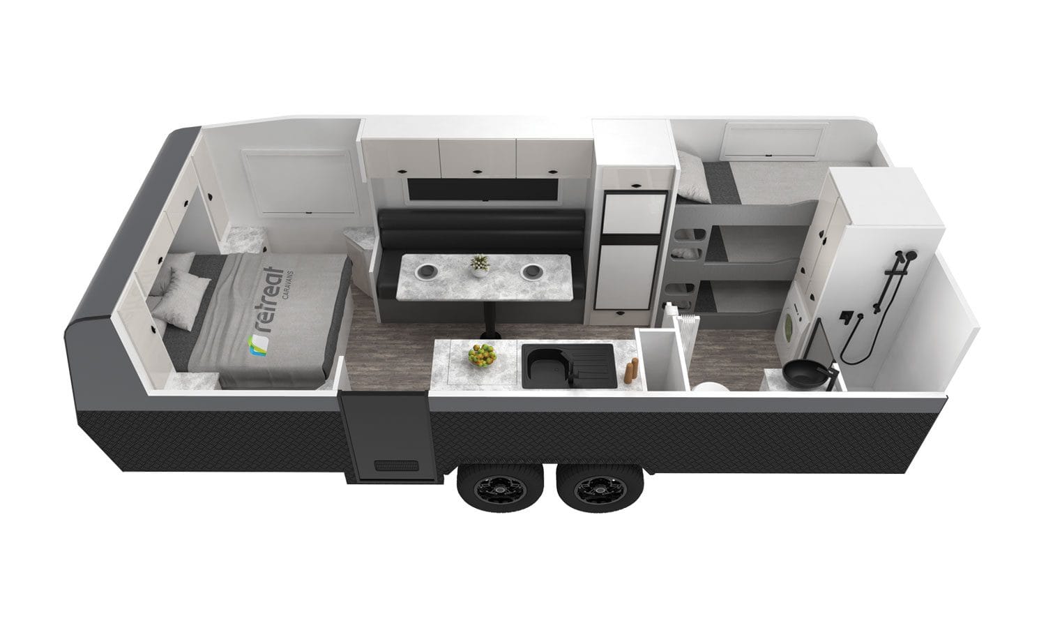If you want a truly off-road, off-grid experience with your caravan, then the exterior needs to be able to withstand some extreme conditions. This is what makes the ERV totally different from anything you would’ve experienced before. The exterior features a toolbox on A-frame, TV entertainment hatch and a grey water tank. External BBQ Grilling and cooking is also possible with the Electric Weber BBQ with its own pull-out tray. The ERV signature colour is always white which helps minimise thermal transfer into the cabin body by reflecting the heat away.